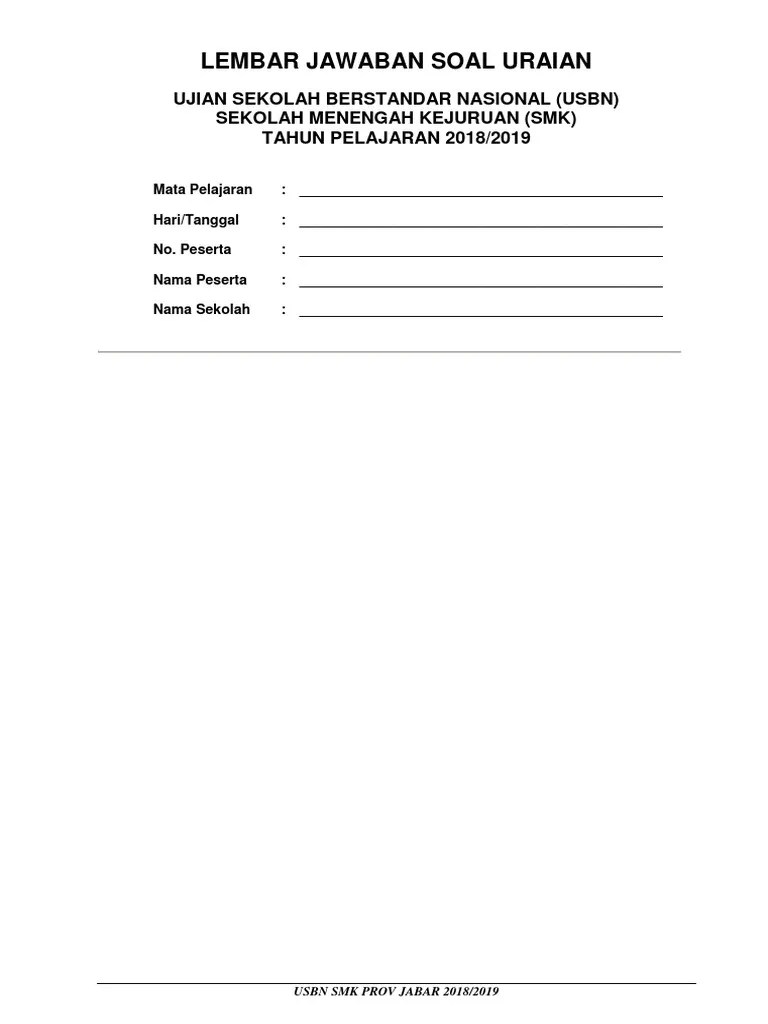Contoh Lembar Jawaban Usbn - Lembar Jawaban Essay Cara Golden : Soal usbn fikih sd/mi kelas 6.